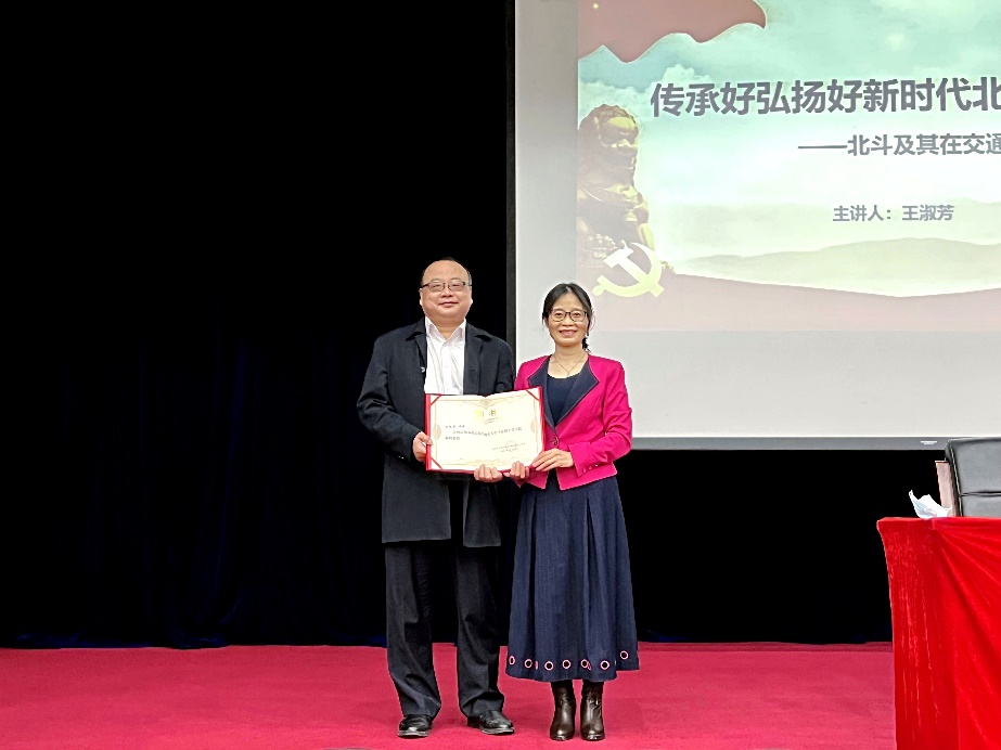 2021年12月15日下午,必赢官网“思想道德与法治”课程邀请北航1995届校友、中组部《榜样3》典型人物、中国交通通信信息中心导航中心副主任、北斗知名专家王淑芳走进思政课课堂,为2021级本科生做《传承好弘扬好新时代北斗精神——北斗及其在交通行业的应用》专题讲座。报告主会场设在学术交流厅,以两校区同步、线上线下相结合的方式举行。我校高等理工学院、未来空天技术学院和士谔书院的300余名本科生在现场聆听了此次报告。报告由院长助理付丽莎副教授主持。