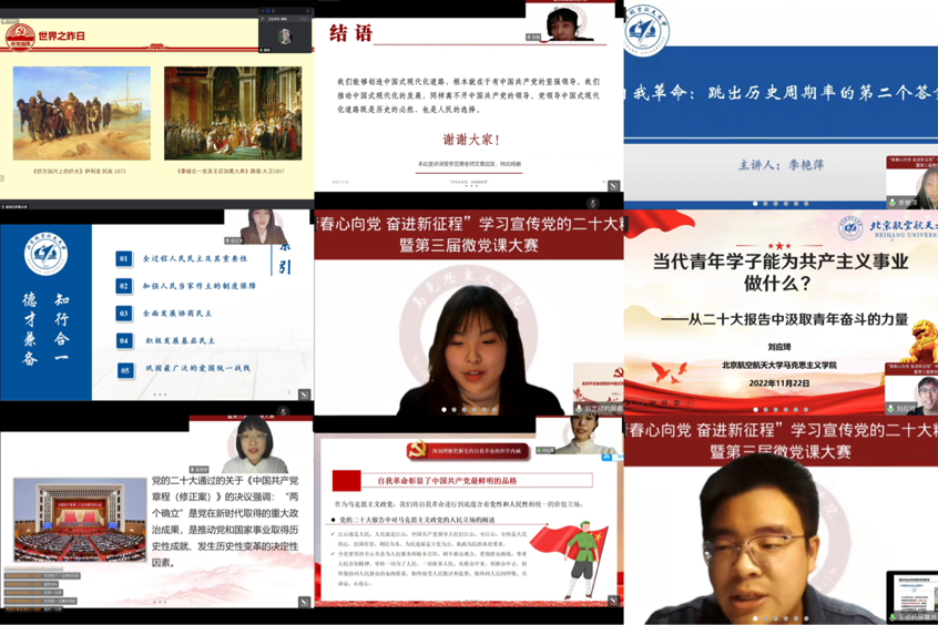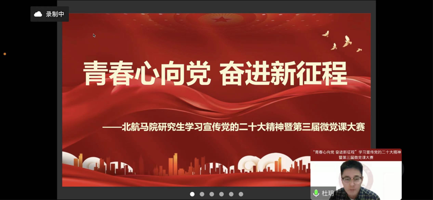 近日,为深入学习贯彻党的二十大精神,进一步学懂弄通做实习近平新时代中国特色社会主义思想,提升研究生的思想理论水平,必赢nn699net官网举办的“青春心向党,奋进新征程”学习宣传党的二十大精神暨第三届微党课大赛。副院长陈萌、2022级博士班主任巩永丹、硕士班主任徐冶琼和2021级硕士班主任刘浩然担任比赛评委,参赛研究生通过线上方式进行宣讲展示,全体硕士研究生旁听。比赛由2022级研究生辅导员杜玥主持。