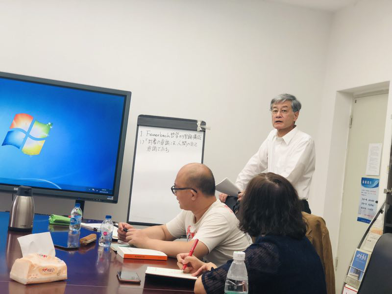 渡边宪正教授首先介绍了《德意志意识形态》online版的排版、标注以及创新。然后围绕马克思《德法年鉴》时期的著作,对费尔巴哈与马克思早期学术关系进行了学术报告。以法国阿尔都塞为代表的一批学者认为马克思在《1844年经济学哲学手稿》中还处于费尔巴哈的人本主义影响之中,马克思在1844—1845年间期间存在“认识论”的断裂。渡边教授则通过详解费尔巴哈对基督教的批判,将神的本质归结为人的本质的“类本质”哲学,主张马克思在1843年就已经开始批判费尔巴哈的启蒙主义式理论结构,《1844年经济学哲学手稿》和《关于费尔巴哈的提纲》之间不存在所谓的“断裂”或“超越”。最后,渡边宪正教授详细的介绍了对于神的本质、人的本质、市民社会、政治国家等哲学概念,费尔巴哈、黑格尔和马克思在理解上的异同。在此期间,渡边教授用板书的形式向必赢官网学生清晰地展示了此次学术活动的思想脉络,鼓励学生共同思考积极发问,并对必赢官网师生所提的问题一一回答。