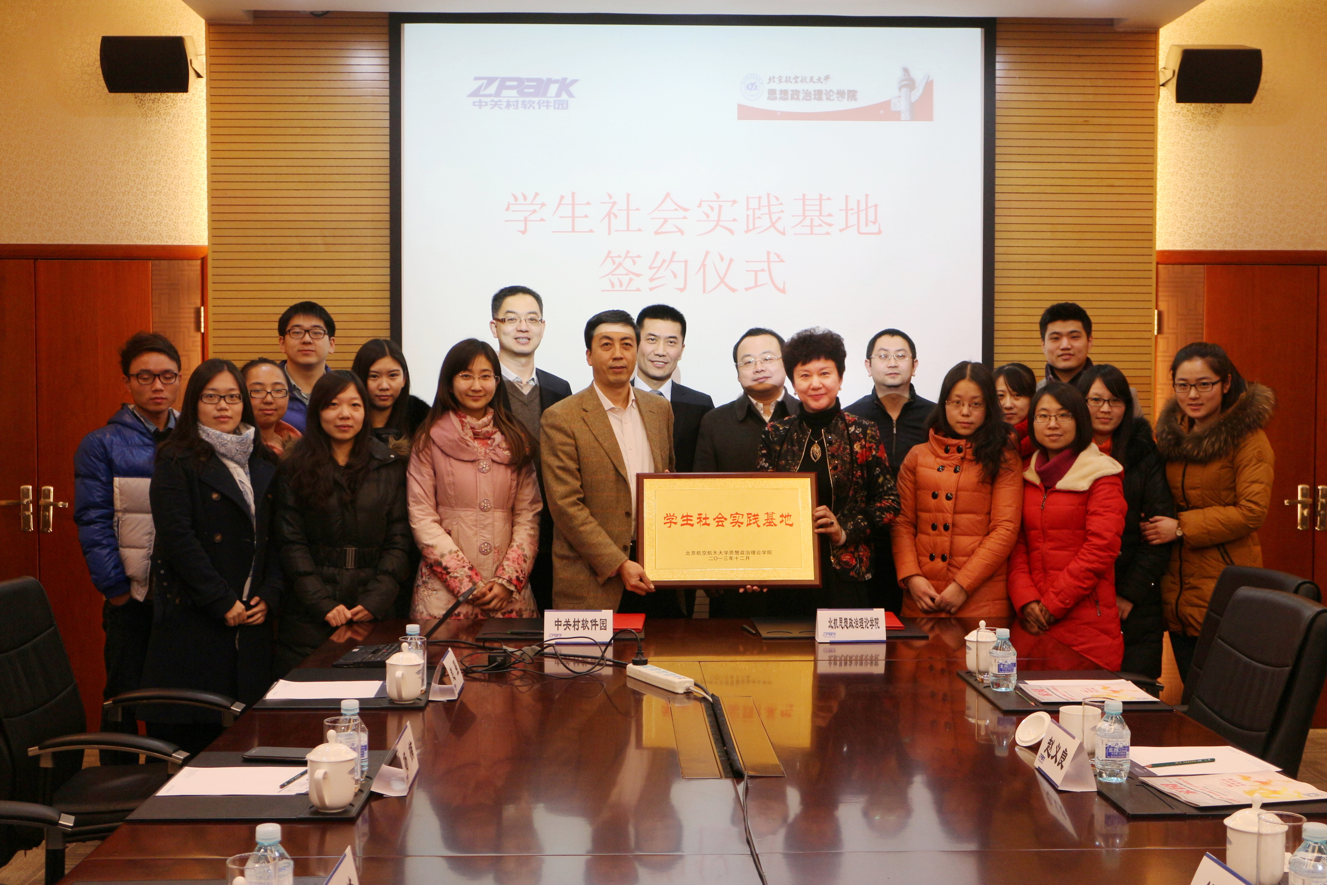 1月14日,必赢官网与中关村软件园人才基地培训中心共建学生社会实践基地签约揭牌仪式在中关村软件园四号楼A座会议室举行。北京中关村软件园发展有限责任公司总经理刘克峰、副总经理杨楠、软件园人才基地中心主任邓延嵘、项目主管赵强以及必赢官网副院长姚小玲、副院长赵义良、院长助理高宁、必赢官网全体研究生参加了此次签约揭牌仪式。首先,北京中关村软件园发展有限责任公司领导和工作人员带领必赢官网师生参观中关村软件园展厅,并向师生介绍了软件园的发展情况。参观结束后,北京中关村软件园发展有限责任公司总经理刘克峰主持座谈会并致欢迎辞,他在座谈会中指出,希望中关村软件园人才基地培训中心与必赢nn699net官网必赢官网建立起长期的合作关系,在人才培养和教师科研方面分工协作,将思政工作与企业需求相结合,辅助学生尽快找到适合自己的岗位,提前了解社会,尽早进入工作状态。