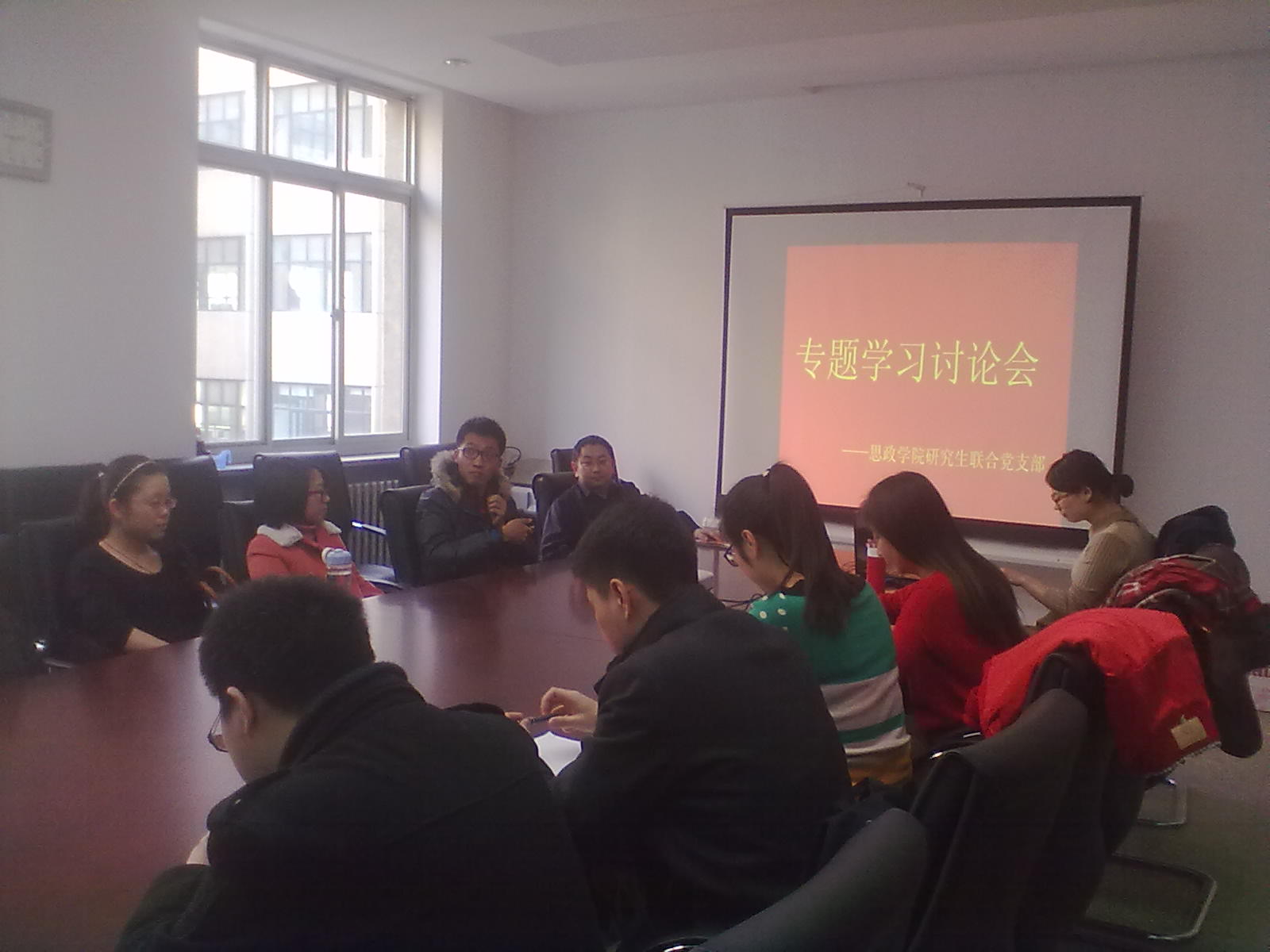 首先,高宁老师对上午张军副校长和金灿荣教授的报告内容进行了总结,并对本学期党支部工作提出了建设性意见。高宁老师就新学期必赢官网党支部应积极开展各项工作,并对应该做什么,如何去做进行了具体的举例说明。如即将召开“两会”和十七届四中全会,作为思想政治理论学院的党员应当对时事进行追踪学习并通过大众传媒对新理论、新思想进行有效地宣传,使更多的学生关注和学习我党提出的新思想、新理论。在谈到如何加强宣传力度时,高宁老师指出,我支部应加强对网络资源的利用,运用网络这一覆盖面广的媒介进行理论宣传,并强调在宣传时应多采用新颖的写作手法来激发读者们的阅读兴趣,从而使读者们在愉快的阅读体验中加深对我党相关理论与政策的认知和了解。