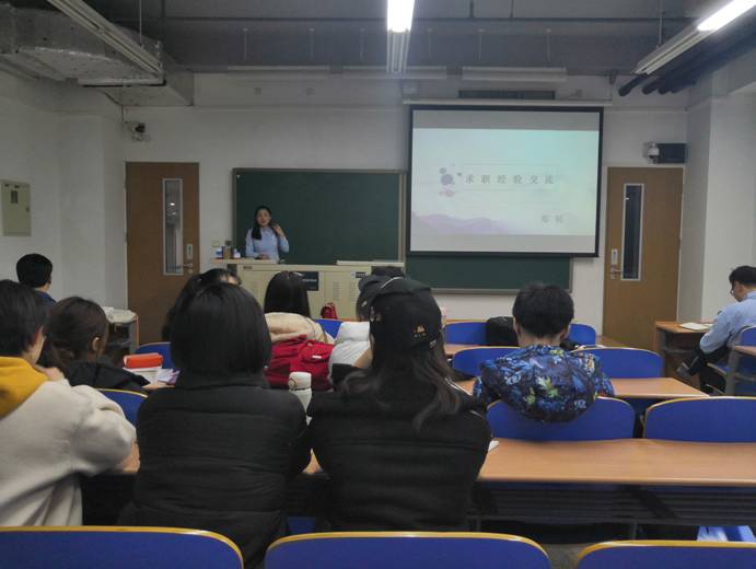 经验交流会由研究生辅导员申勇主持。首先,他向2017级研究生介绍了参加本次就业经验交流会的老师和学姐,并就学校相关就业指导流程和大家做了简单说明。然后,付丽莎老师和梁天屹老师分别向大家讲述了自己的求职经历和相关的面试经验。付丽莎老师从自我介绍、面试应对、职业发展等方面向2017级硕士生进行了讲解。接着,2016级硕士生毕业生代表郑钊学姐从简历制作、笔试准备、面试策略、求职心态等方面与同学们进行了经验分享。最后,两位老师和学姐与同学们进行了互动答疑,本次经验交流会在热烈的气氛中结束。