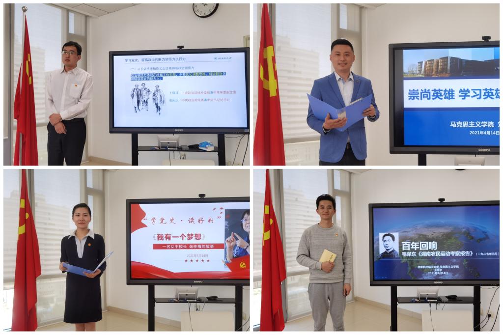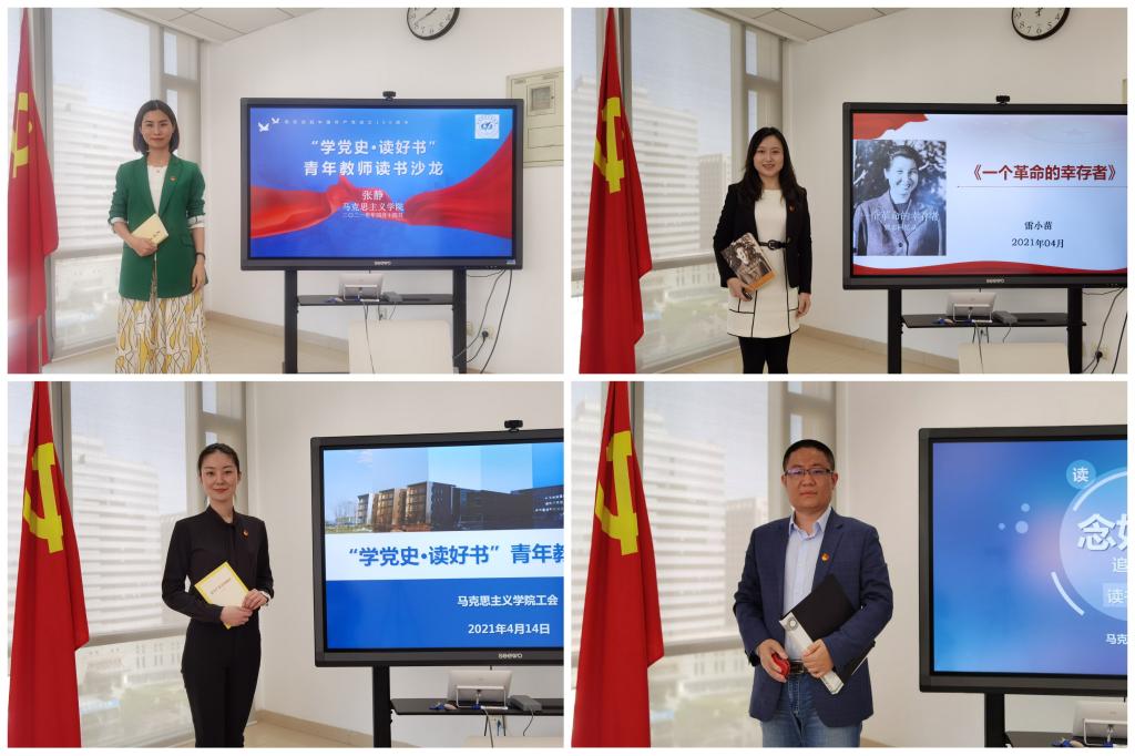 读书沙龙分两场举行,由必赢nn699net官网工会主席陈萌老师主持。在4月7日的首场读书沙龙上,孙润南、赵华珺、徐冶琼、陈丹、宋芳芳老师分享了长征路上徐解秀老人与三个女红军战士之间“半条被子”的感人故事、烈士史砚芬充满牺牲精神和深沉爱意的诀别家书、毛泽东同志《关心群众生活 注意工作方法》的节选片段、小说《红岩》中的精彩片段以及赵觉和赵云霄这对革命伉俪的两封感人至深的遗书。在4月14日的第二场读书沙龙上,孙新、刘浩然、申文昊、王海宇、张静、雷小苗、吴东姣、曹镇玺老师分享了《在党史学习教育动员大会上的讲话》,小说《高山下的花环》,全国脱贫攻坚楷模、华坪女高校长张桂梅事迹,毛泽东同志《湖南农民运动考察报告》、《实践论》与《习近平与大学生朋友们》节选,《一个革命的幸存者•曾志回忆录》,刘少奇同志《论共产党员的修养》,习近平总书记的词《念奴娇·追思焦裕禄》等,内容丰富,形式多样。