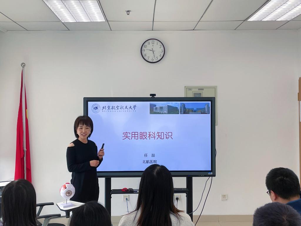 全科专家卢艳医生围绕日常生活中各类常见疾病的科学用药知识展开讲解,为学院教职工详细介绍了在感冒、咳嗽、发烧、拉肚子、过敏等症状产生时如何科学选择最对症的药物。眼科专家任喆医生从眼睛结构及视觉产生原理讲起,循序渐进剖析了各类眼科疾病的产生与眼睛内部结构的关系,讲解了麦粒肿、结膜出血、过敏性结膜炎、干眼症、白内障等眼部问题的预防及治疗,尤其强调了办公室一族采用“20-20-20护眼法则”和冷敷热敷保持视力的重要性。