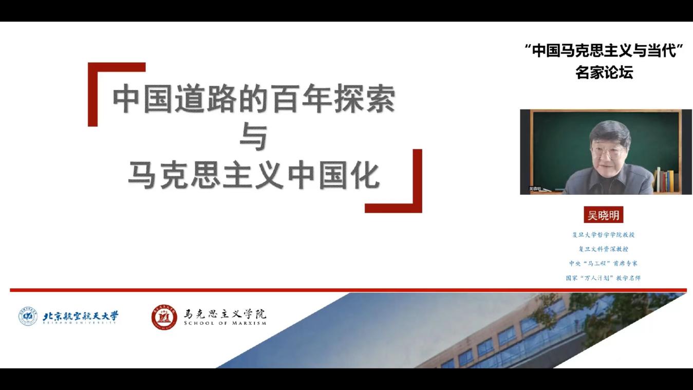 为深入学习贯彻习近平新时代中国特色社会主义思想,将党的十九届六中全会精神融入课堂,进一步提高博士生思政必修课《中国马克思主义与当代》的思想性、理论性和亲和力、针对性,2022年4月29日下午,必赢nn699net官网邀请复旦大学资深教授吴晓明走进我校博士生思政课堂,做了“中国道路的百年探索与马克思主义中国化”的专题报告。报告以在线方式举行,我校2021级全体博士生1000余名学生聆听报告,青马班学员和必赢nn699net官网部分教师旁听了报告。报告由必赢nn699net官网副院长王娜主持。