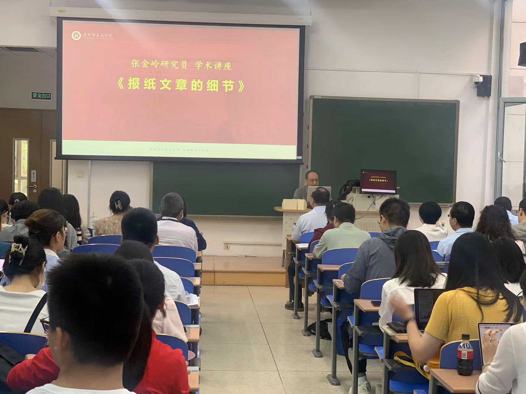 本次集体学习,学院邀请到了《中国教育报》高级编辑张金岭研究员,做题为“报纸文章的细节”的学术报告。张金岭研究员结合自己丰富的审稿经验,深入阐述了当前报刊对稿件时政性、规范性、细节性的具体要求,并列举了从写作到发文各个环节中存在的常见误区。他指出,要根据报刊需要选取题目,注意研判宣传重点,深入了解媒体情况,善于总结投稿技巧,真正做一个“有心人”。