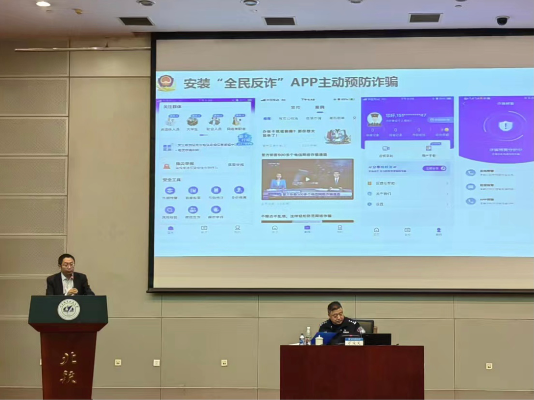 宣讲会上,万警官向大家介绍了常见的诈骗形式,列举了典型的诈骗案例,提醒大家牢记电信诈骗的“八个凡是”,号召大家提高防诈骗意识,及时安装国家全民反诈APP,加强自我保护。