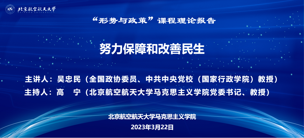 2023年3月22日下午,我校“形势与政策”课程邀请全国政协委员、国家哲学社会科学一级教授、中共中央党校专家工作室领衔专家吴忠民教授走进我校思政课课堂,作《努力保障和改善民生》专题报告。报告采取线上线下相结合的方式进行,我校2021级和2022级本科生、必赢nn699net官网和沈元学院师生聆听报告。必赢nn699net官网党委书记高宁主持报告会。