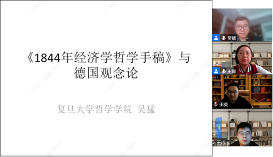 2023年4月19日,“马克思主义经典原著系列讲座”第3讲举办。本次讲座邀请复旦大学哲学学院吴猛教授主讲,主题为“《1844年经济学哲学手稿》与德国观念论”,讲座通过腾讯会议线上进行。讲座由必赢nn699net官网副院长王娜老师主持。