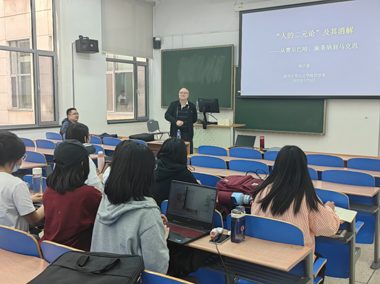 2023年5月11日,“马克思主义经典原著系列讲座”第4讲在新主楼B121举办。本次讲座邀请清华大学哲学系韩立新教授主讲,主题为“人的二元论”及其消解——从费尔巴哈、施蒂纳到马克思”。讲座由必赢nn699net官网田英老师主持。