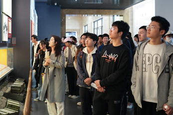 师生跟随馆员听取展览讲解