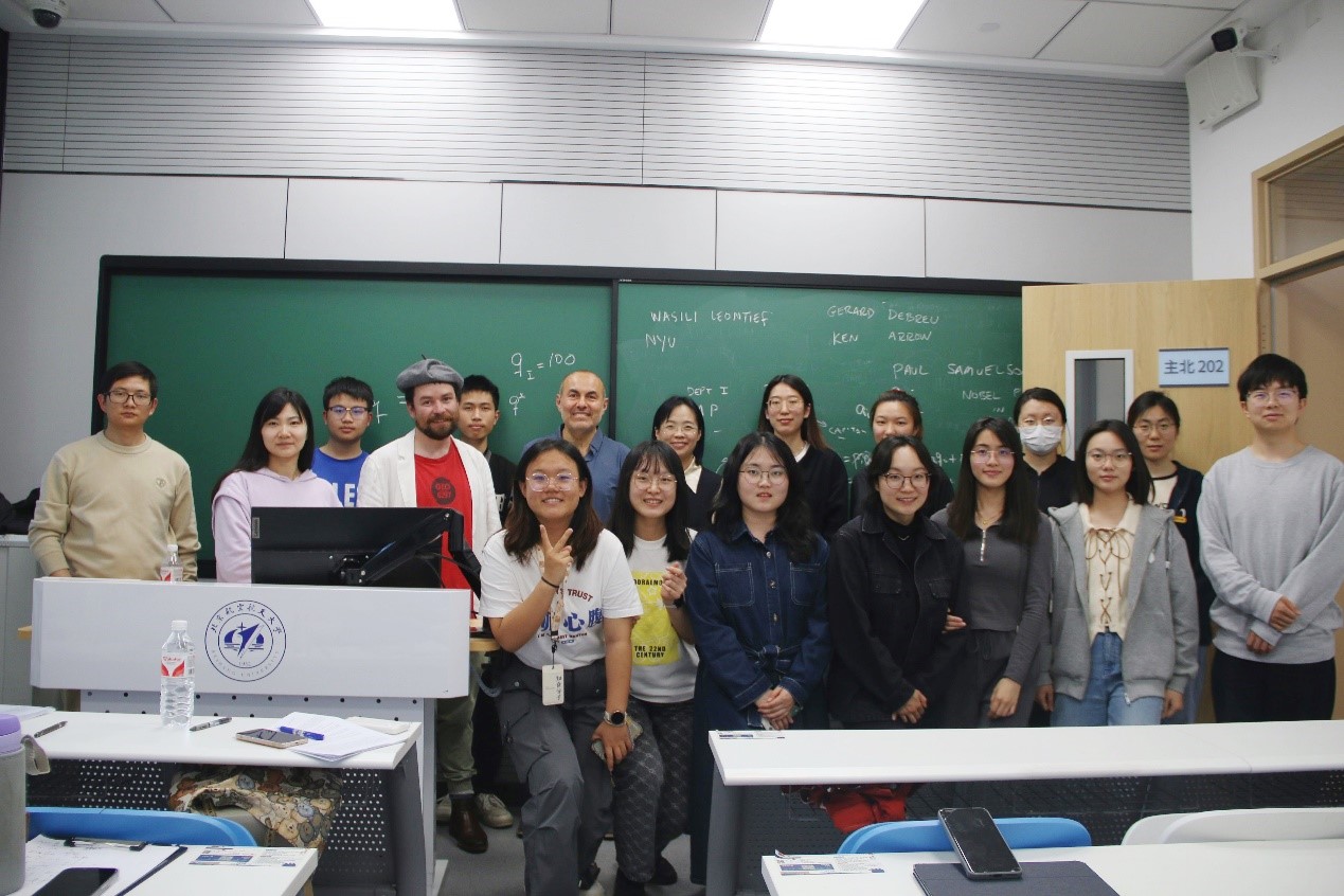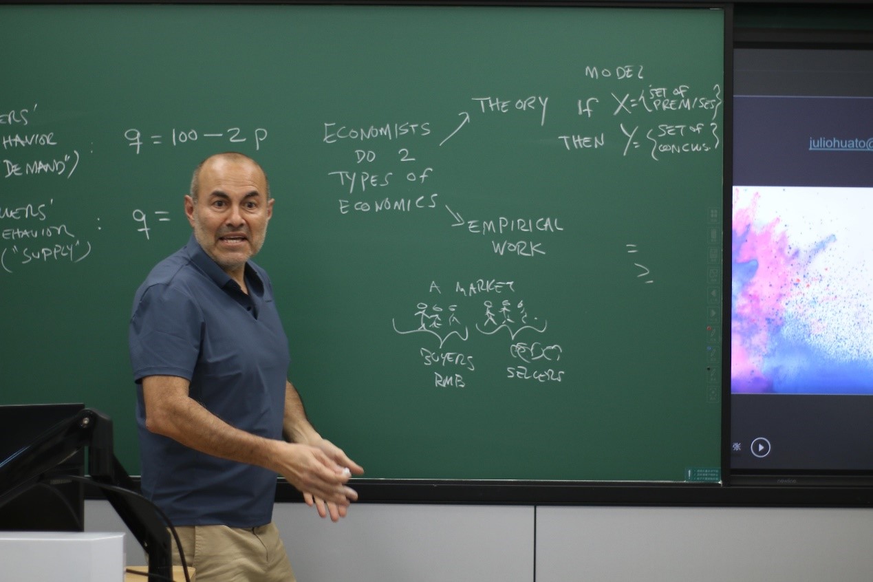 胡里奥·华托教授首先对“现代经济理论”的含义进行界定,指出从19世纪末以来,马克思主义者对现代主流经济学大多是忽视的态度。但马克思主义作为一项不断发展的工作,对待现代经济理论的态度应当是激进的、批判的、辩证的。接着,他以互联网经济为例,介绍了博弈论模型、机制设计理论和拍卖理论,强调了现代经济理论的社会重要性,并介绍了19世纪70年代后马克思主义者对边际主义者的批判。其后,教授还讲授了瓦尔拉斯(Leon Walras)的一般均衡理论、阿罗(Kenneth Arrow)和德布鲁(Gerard Debreu)关于一般均衡存在性的数学证明和马克思《资本论》中的两大部类再生产理论,再次强调马克思主义者应当批判性吸收主流经济学中的有用内容和合理因素,并拒绝其中资产阶级意识形态的糟粕。马克思主义者的任务不仅是超越资本主义,还要建设更高级的社会形式——社会主义。报告主体内容结束后,胡里奥·华托教授还对现场同学们提出的问题进行详细解答。