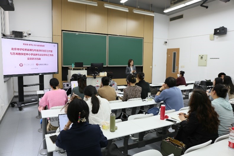4月27日,海淀区万寿路学区教育教学部刘咏平副部长带领道德与法治学科工作坊的优秀教师赴我校就深化大中小学思想政治教育一体化建设开展交流研讨。此次活动由北京市学校思想政治理论课教师名师工作室负责人付丽莎主持。