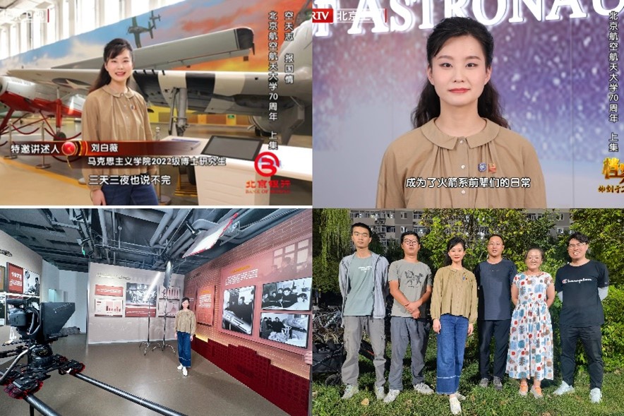 作为青年一代特邀讲述人,刘白薇受北京卫视《档案》栏目组邀请,同北航退休教师章国栋、过崇伟等老师,共同录制“空天志 报国情”,讲好前辈故事,传承北航精神。