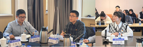 接下来,由博士生党支部学生党员代表发言。2023级博士生俞光瑞汇报了自己通过厚植学术根基、培育问题意识、创新阐释形式等方式提升科研能力的情况。2022级博士生于鹏飞作为学院博士生“求是”书社的负责人,全面介绍了博士生集体学习的情况,他指出集体学习不仅营造了良好的学术氛围,还吸引到其他院校的同学走进读书会,深化了不同院校、不同学科间的交流与合作,在交流中强化了北航马院影响力。2022级博士生刘白薇发言主题为“青春无畏,不忘前行”,她分享了自己在博士期间的学习和社会实践参与经历,强调了青年要成长为国家栋梁之才,既要读万卷书,也要行万里路,以实际行动发挥引领作用,践行青马担当。