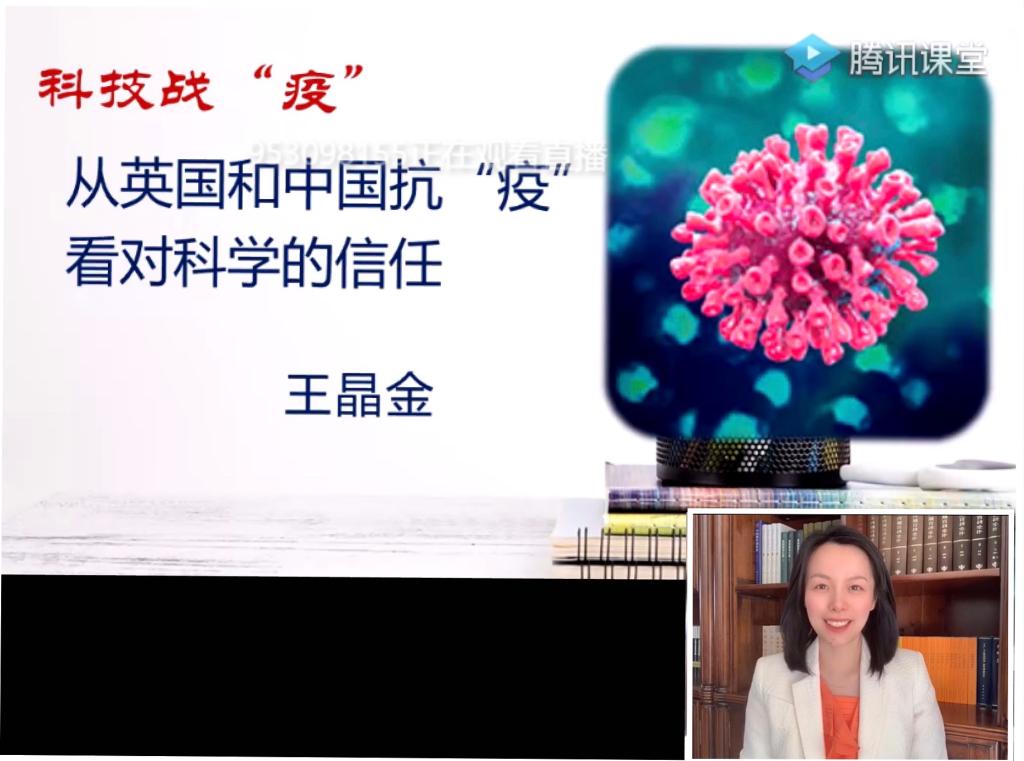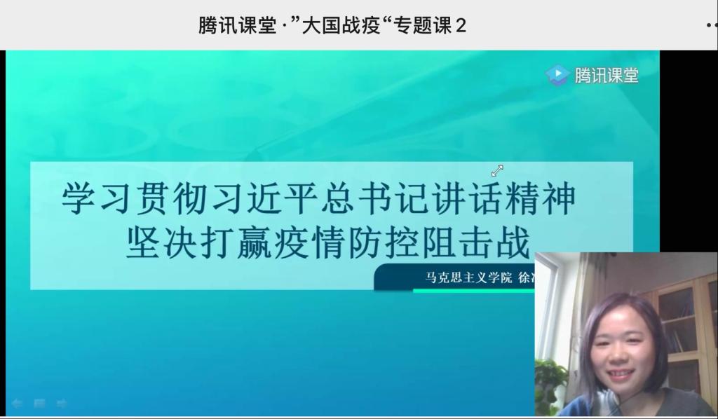 王晶金老师通过梳理中国、英国抗击疫情的国家治理政策,用生动案例和鲜活的一手素材,增强学生对中国特色社会主义道路、理论、制度、文化、科学的思想认同、情感认同和理论认同,展示中国在科技战“疫”中给世界战疫提供的中国智慧和中国方案。课程分为集中授课与讨论两个环节,使用腾讯课堂和腾讯会议两个平台,在讨论环节,同学们纷纷积极“举手”并“上台”回答,踊跃参与分享了自己对中国和英国抗“疫”的认识,以及对中国抗击疫情和科学的思考与想法。在课程结尾,王晶金告诉同学们,作为未来的科研工作者和工程师应明确科学的目标,承担好科学工作者的责任,让科学更好地服务于人,更好地服务国家。