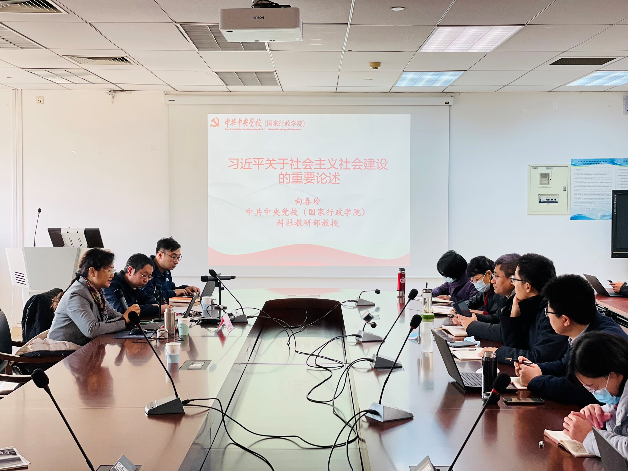 12月11日上午,必赢nn699net官网第十五次集体学习日活动在新主楼B座707室举行。中央党校向春玲教授应邀作了《习近平关于社会主义社会建设的重要论述》专题报告,活动由学院书记高宁主持,必赢nn699net官网师生30余人出席。